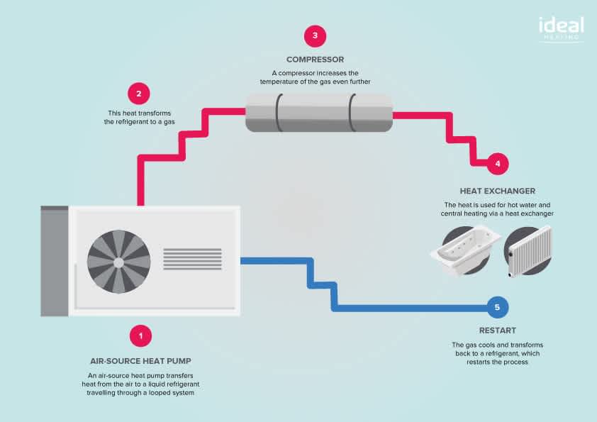 Air source heat pumps operate on the principles of thermodynamics. This is the science behind how heat, temperature and energy transfer from one place to another.