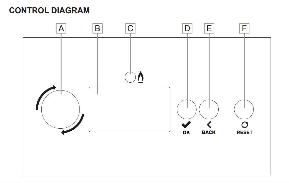 The image below shows the layout of your Evomax 2 boiler’s control panel, which you can refer back to elsewhere on this page.