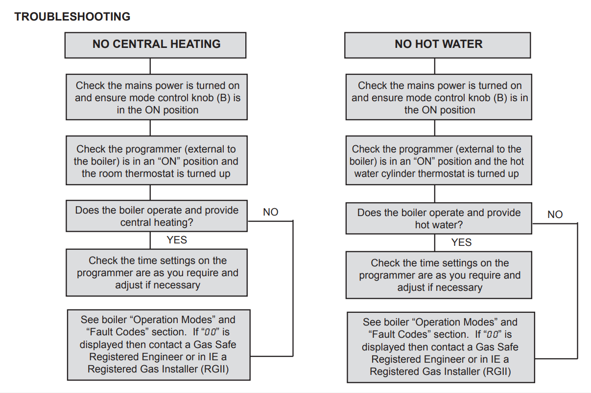 If you’re still having a problem with your boiler, you can download a full copy of the PDF user guide at the bottom of this page. It contains a full list of fault and display codes, as well as instructions on what to do if one is displayed.