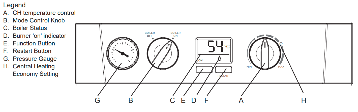 This image explains the layout of your boiler’s control panel, and will be referenced within this page for ease of use.